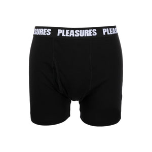 logo waistband boxers from Pleasures featuring cotton, black/white, logo waistband, stretch-design and pack of two. Just a reminder that this piece must be tried on over your own garments.. Logo boxer briefs Size and Fit - This piece fits true to size. We recommend you get your regular size. Model is 1,84m / 6ft 1in wearing size M
