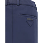 Prada’s Jersey Pants combine comfort and style with an elasticized waistband and belt loops at the waist. They feature two side welt pockets and two on the back, enhanced by the triangular patch and iconic logo sewn on the back. The style tapers at the bottom, adding a modern detail to the silhouette.