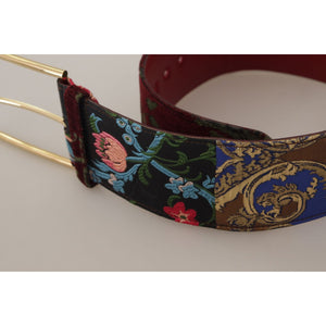 Dolce & Gabbana Red Embroidered Leather Gold Logo Metal Buckle Belt