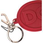 Dolce & Gabbana Red Rubber DG Logo Silver Brass Metal Keyring Keychain