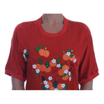 Dolce & Gabbana Red Silk Oranges Floral Crystal Blouse