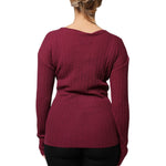 Roberto Cavalli Maroon Jumper Keyhole Knit Pullover Sweater
