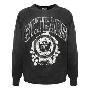 black cotton lightweight jersey distressed finish logo print to the front crew neck long sleeves ribbed cuffs and hem French terry lining Logo cotton sweatshirt Size and Fit - This piece fits true to size. We recommend you get your regular size. Model is 1,84m / 6ft 1in wearing size M