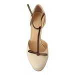 SERGIO LEVANTESI Beige T-Strap Block Heels Pumps Leather Shoes