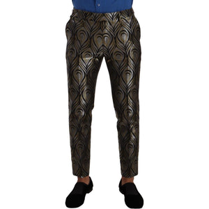 Dolce & Gabbana Silver Gold Jacquard Men Trouser Dress Pants