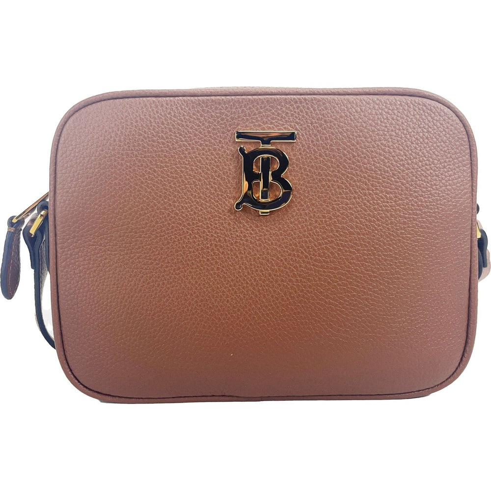 Burberry Small Leather Tan Camera Crossbody TB Logo Bag