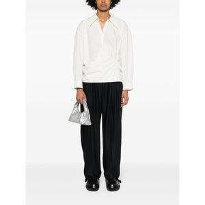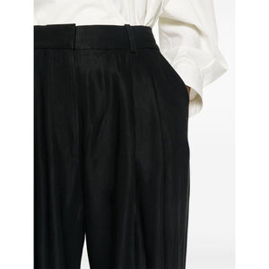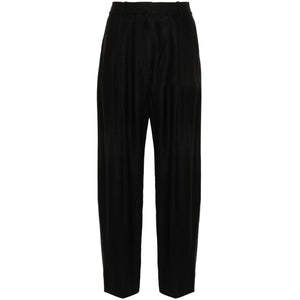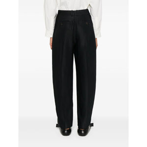 midnight blue twill weave high-waisted belt loops pleat detailing pressed crease two diagonal pockets to the sides two rear button-fastening pockets tapered leg concealed front button, hook and zip fastening Wool wide leg trousers Size and Fit - This piece fits true to size. We recommend you get your regular size. Model is 1,75m / 5ft 8in wearing size 8 (UK)