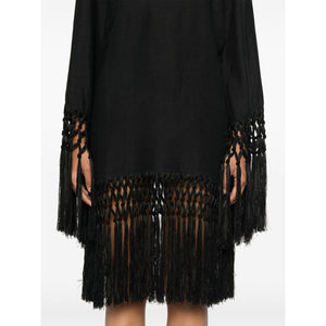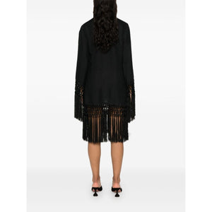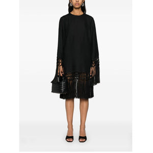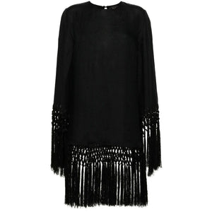 black linen/flax shift style round neck long sleeves fringed edge fringed hem keyhole detail to the rear unlined single rear button fastening This item contains at least 50% materials which are certified or widely recognised as having a lower environmental impact through production and/or manufacturing processes that reduce water consumption and the use of harmful chemicals, or re-use by-products of the production process. Learn more about what makes a product Conscious on our Conscious Criteria page Murray linen short dress Size and Fit - This piece fits true to size. We recommend you get your regular size. Model is 1,75m / 5ft 8in wearing size 40 (IT)