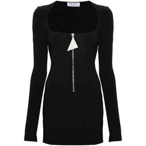 black interlock weave scoop neck long sleeves dart detailing full lining thigh-length branded zip puller front zip fastening Half-zip mini dress Size and Fit - This piece fits true to size. We recommend you get your regular size. Model is 1,75m / 5ft 8in wearing size 40 (IT)