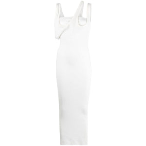 asymmetric-neckline ribbed dress from The Attico featuring white, cotton, ribbed knit, asymmetric neck, sleeveless and long length. Ribbed jersey midi dress - Runway Size and Fit - This piece fits true to size. We recommend you get your regular size. Model is 1,75m / 5ft 8in wearing size 40 (IT)
