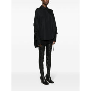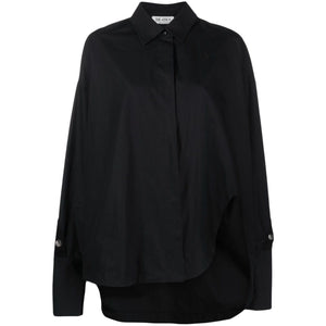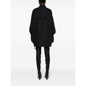 black cotton tonal stitching asymmetric hem studded logo detail to the sleeves and rear embroidered logo at the chest oversize design classic collar concealed front button fastening long sleeves buttoned cuffs side slit rear curved hem Parachute canvas shirt Size and Fit - This piece fits true to size. We recommend you get your regular size. Model is 1,75m / 5ft 8in wearing size 40 (IT)