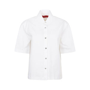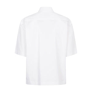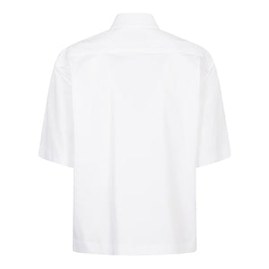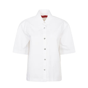 White shirt, short sleeves, jewel button closure, straight hem. Ben cotton shirt Size and Fit - This piece fits true to size. We recommend you get your regular size. Model is 1,75m / 5ft 8in wearing size S