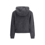 Wool Sweatshirt by Thom Browne with adjustable drawstring hood and ribbed hem. The style features a double-slider front zipper closure, two side welt pockets, and ribbed cuffs and hem for a comfortable fit and a refined design.