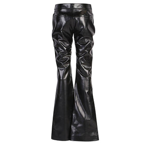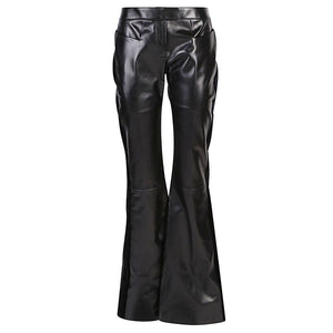 Black, calfskin, hidden front closure, two round side pockets, two rear fillet pockets, ironed fold and flared cut. Flared leather and velvet trousers Size and Fit - This piece fits true to size. We recommend you get your regular size. Model is 1,75m / 5ft 8in wearing size 40 (IT)