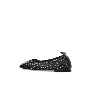 black calf leather shimmer finish crystal embellishment logo pull-tab at the heel flat rubber sole round toe Crystal ballet flats Size and Fit - Heel 0,4 in / 1 cm