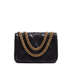 black calf leather quilted VLogo Signature foldover top with magnetic fastening chain-link shoulder strap main compartment Quiltie 67 small leather shoulder bag Size and Fit - Width 7,48 in / 19 cm