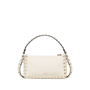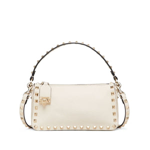 cream white leather silver-tone Rockstud detailing single top handle adjustable detachable shoulder strap top zip fastening internal logo patch internal slip pocket Rockstud small leather shoulder bag Size and Fit - DEPTH: 7.0 Centimetres. HEIGHT: 13.0 Centimetres. WIDTH: 19.0 Centimetres. HANDLE: 11.5 Centimetres. STRAP: 50.0 Centimetres.