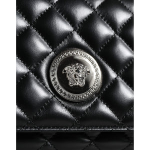 Versace Black Quilted Lambskin Leather Crossbody Shoulder Bag