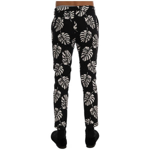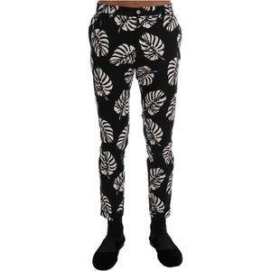 Dolce & Gabbana White Black Leaf Cotton Stretch Slim Pants