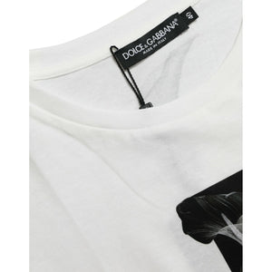 Dolce & Gabbana White Black Roses Crewneck Cotton T-shirt