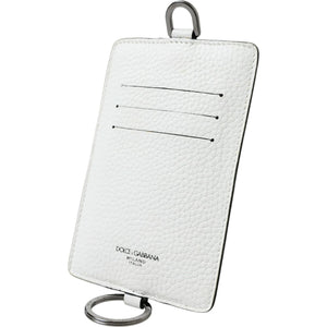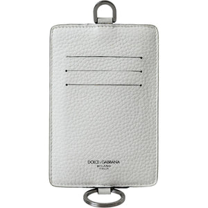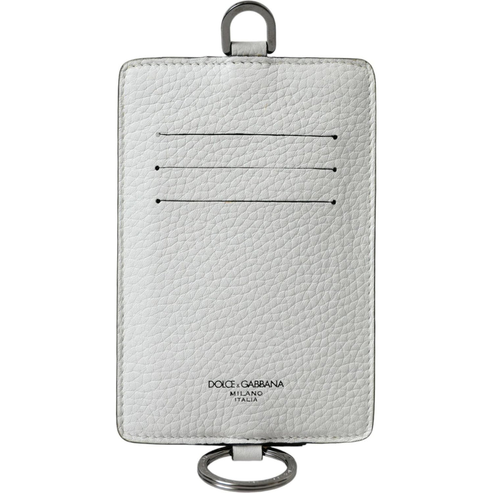 Dolce & Gabbana White Calf Leather Lanyard Logo Card Holder Wallet