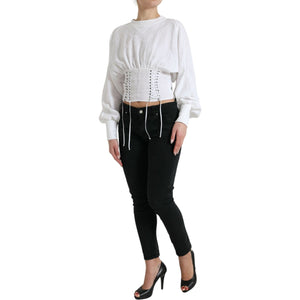 Dolce & Gabbana White Cotton Corset Cropped Long Sleeves Topclothing