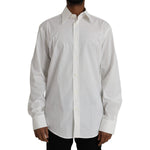 Dolce & Gabbana White Cotton Dress Slim Fit GOLD Shirt