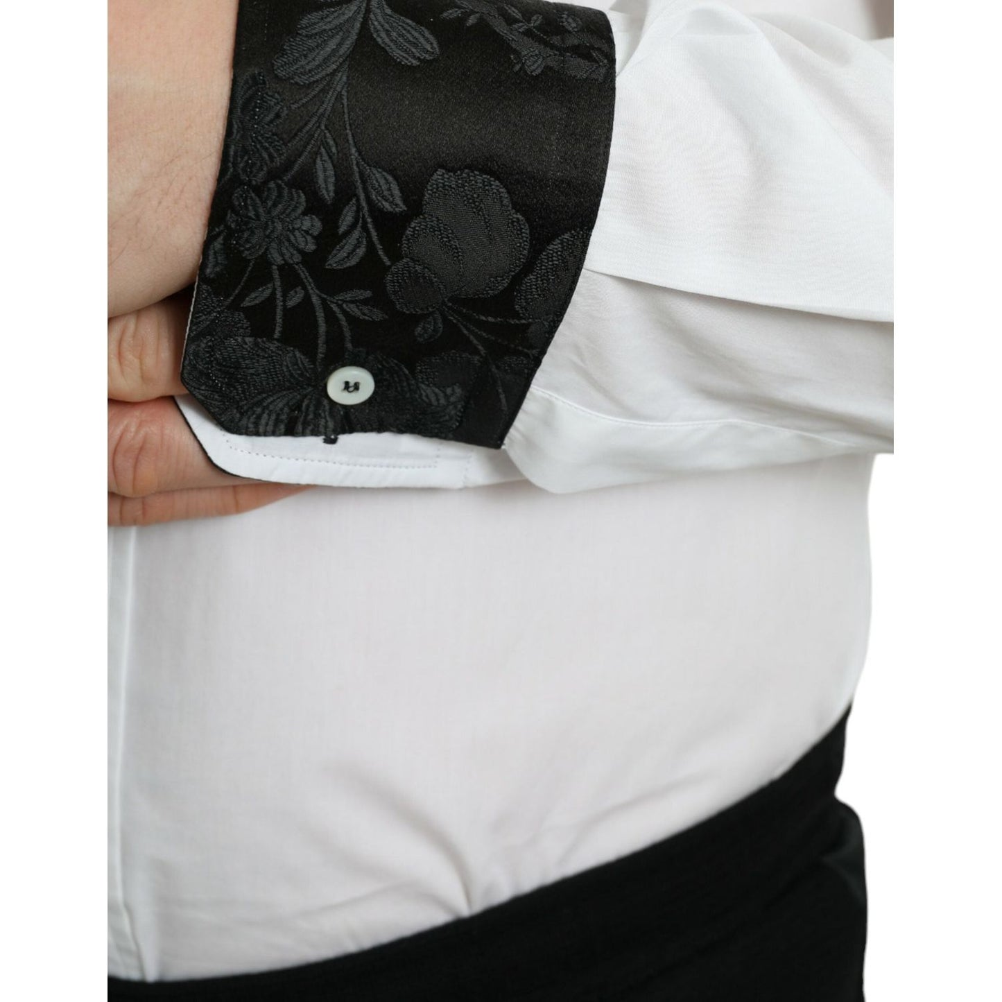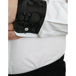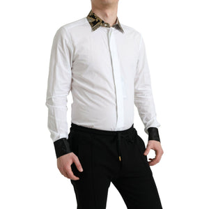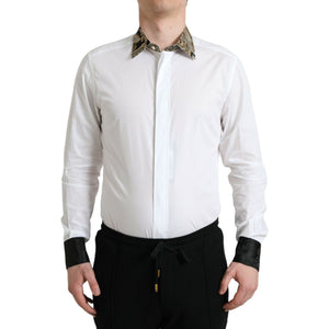Dolce & Gabbana White Cotton Jacquard Formal GOLD Dress Shirt