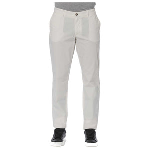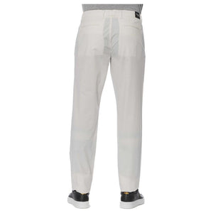 Elevate your wardrobe with these pristine white trousers by Trussardi Jeans, where comfort meets Italian elegance. These sleek pants boast a front zipper and button closure, tailored to perfection, ensuring a flattering fit. Complete with side pockets and back welt pockets, they’re both functional and stylish. A versatile essential that promises to make a statement.