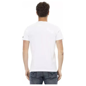 Discover the pinnacle of casual sophistication with Trussardi Action’s White T-shirt, where timeless elegance meets modern edge. This short-sleeve, round-neck tee is emblazoned with a bold front print that captures the spirit of the trendsetting wearer. Perfectly tailored from a sumptuous blend of cotton and viscose, this T-shirt exemplifies luxurious comfort and an effortless streetwear vibe, crafted with the quality you’d expect from the renowned Trussardi Action brand.