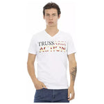 Unleash the epitome of cool with this Trussardi Action tee that redefines everyday luxury. Exude confidence with this V-neck, short-sleeved silhouette boasting a bold front print that captures attention and makes a statement. Perfect for the fashion-forward who dare to stand out, this T-shirt is a versatile add-on to your wardrobe.