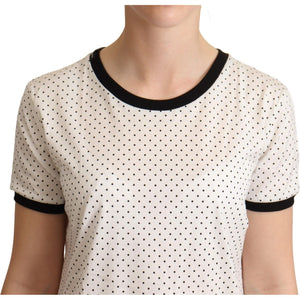 Dolce & Gabbana White Dotted Crewneck Cotton T-shirt