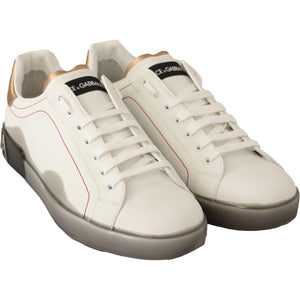 Dolce & Gabbana White Gold Leather Low Top Sneakers Casual Shoes
