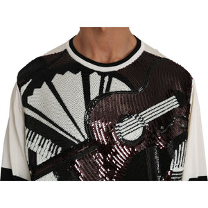 Dolce & Gabbana White Jazz Sequined Guitar Pullover Top Sweater