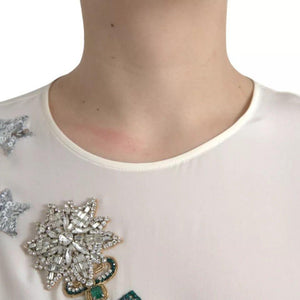 Dolce & Gabbana White Silk Crystal 3/4 Sleeves Blouse Top