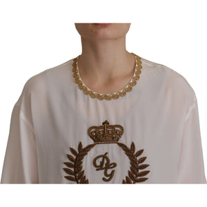 Dolce & Gabbana White Silk Gold DG Crown Crystal Blouse Top