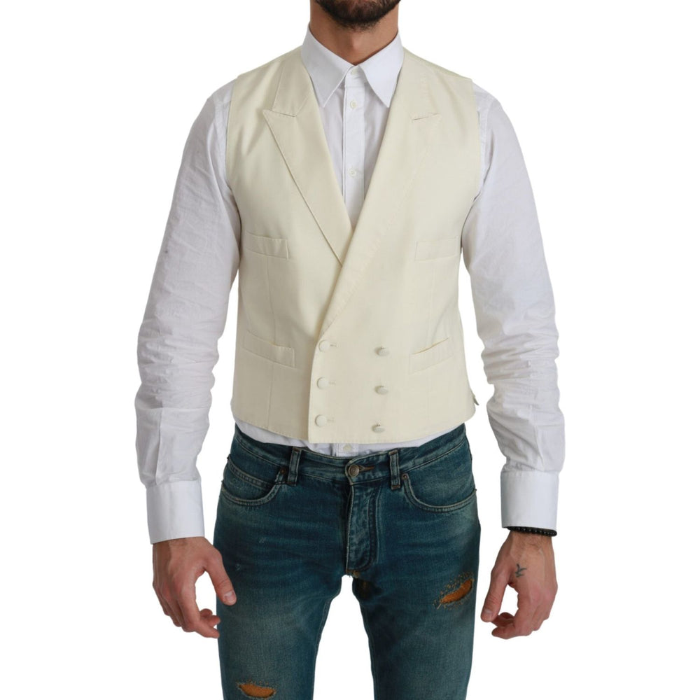 Dolce & Gabbana White Waistcoat Formal Wool Vest