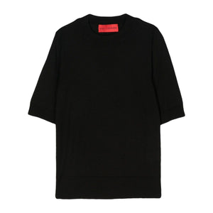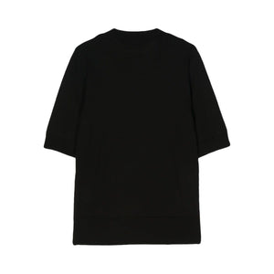 black cashmere-silk blend fine ribbed ribbed trim crew neck short sleeves ribbed hem Silk and cashmere blend half-sleeve sweater Size and Fit - This piece fits true to size. We recommend you get your regular size. Model is 1,75m / 5ft 8in wearing size 40 (IT)