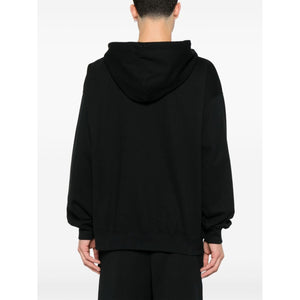 black two side inset pockets logo print at the chest drop shoulder Logo cotton hoodie Size and Fit - This piece fits true to size. We recommend you get your regular size. Model is 1,84m / 6ft 1in wearing size M