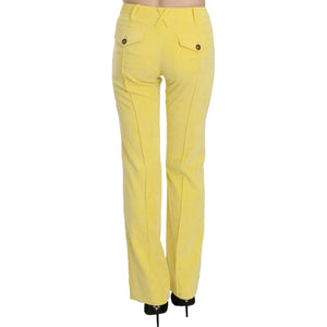Just Cavalli Yellow Corduroy Mid Waist Straight Trousers Pants