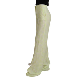 MSGM Yellow Green Cotton High Waist Straight Long Pants