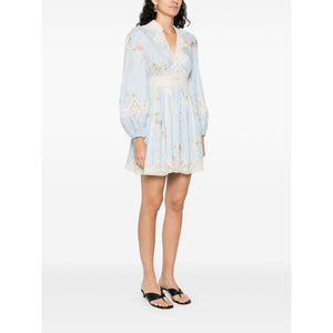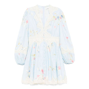 light blue front button fastening V-neck long sleeves fitted waistline Lucky linen mini dress Size and Fit - This piece fits true to size. We recommend you get your regular size. Model is 1,75m / 5ft 8in wearing size 1 (NUM)